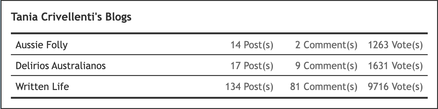 Here is a print-screen of the final statistics of the blog before it went awol: