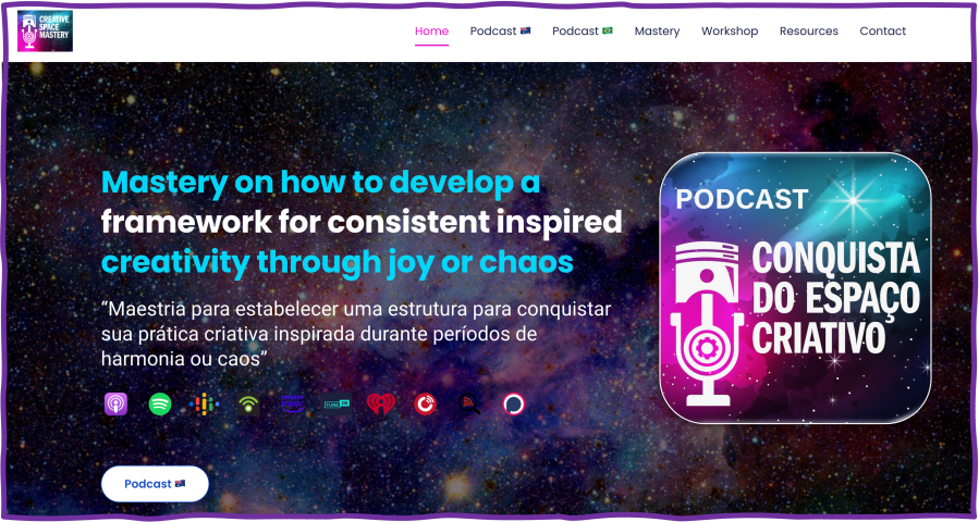 Acabei de lançar meus podcasts Creative Space Mastery em inglês e português, com meu novo site: creativespacemastery.com