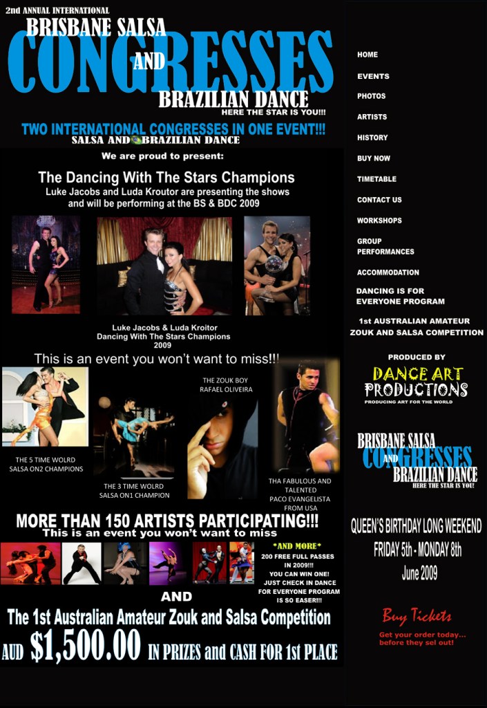 Brazilian Dance styles are invading Australia and the Sydney Salsa Congress 2010 will have a Brazilian Room every night of the event.From 28th to 31st January 2010. Samba, Gafieira, Lambada/Zouk, Forró and Capoeira are spreading and thousands of dance fanatics are getting into their groove. If you have never been to the congress you are missing out on the biggest event of Latin Dance in Australia, one of the top 3 in the world. It is an amazing experience, more than 5,000 dancers in the parties, more than 80 shows and 75 workshops. Three days of dance classes and four nights with shows then parties that will go into the night. The energy is fantastic and there are different options of tickets. You can choose from one night to the full passes for the whole event. I’ll see you there!