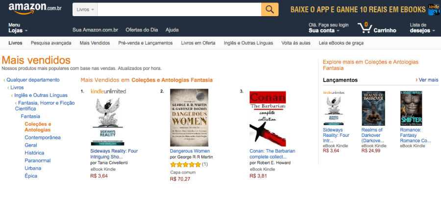 Sideways Reality, meu primeiro livro eletrônico escrito em inglês lançado da Amazon, atingiu ontem, 8 de Abril de 2016, a posição de livro mais vendido na Amazon do Brasil, dentro da categoria de Coleções e Antologias – Fantasia.