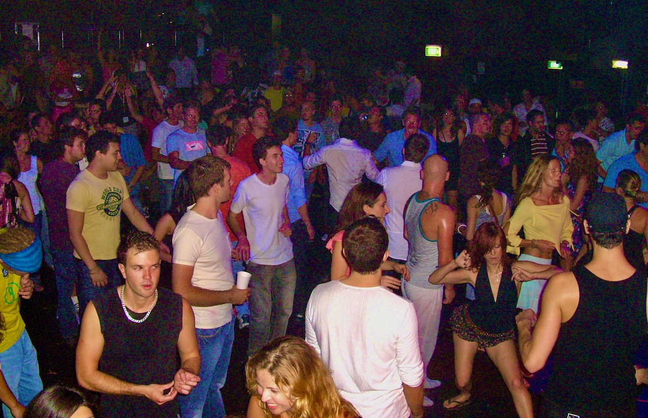 The usual rules do not apply there: kissing in the dance floor is permitted, and quite common, dancing is kind of going with the flow, having a good time, drinking, talking, checking out the girls and guys, that is a must.